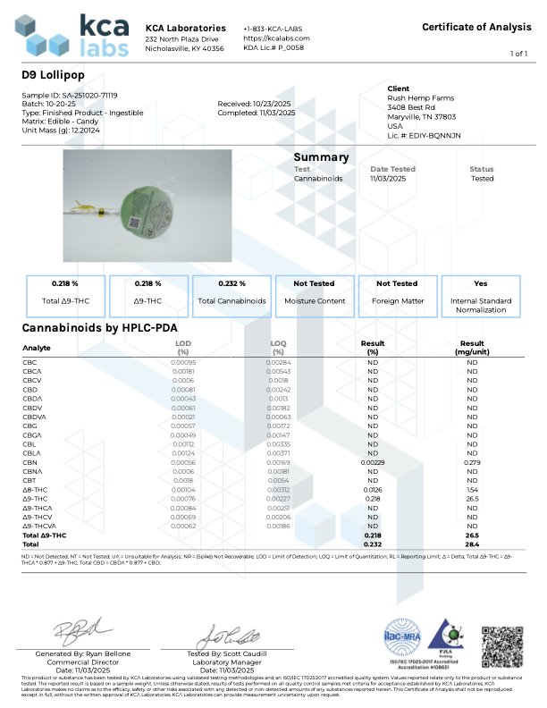 Cane sugar, light corn syrup, natural and artificial flavors, citric acid, food coloring (as needed), MCT oil, Delta-9 THC.